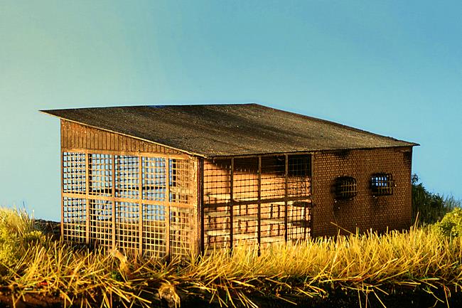 Das Modell vereint auf kompakter Grundfläche beide Anforderungen. Ein schon etwas geflicktes Wellblechdach schützt vor Regen, die Architektur ist einfach und zweckmäßig - repräsentiert wird woanders, hier wird gearbeitet.