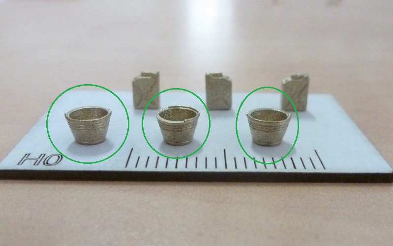 Die Packung enthält 5 Stk. Metallkübel in Größe H0.