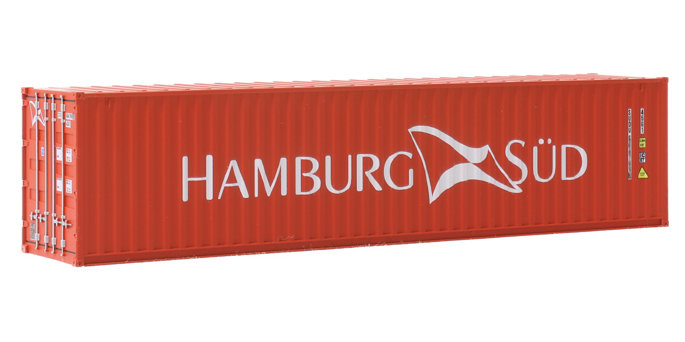 Igra Model, Spur H0, Container 40ft "HAMBURG SÜD", 96020001/11 Container-Nr. SUDU5647885 4501 Container im Maßstab H0 mit Gewicht innenliegend. Modell ist lackiert, mit allen Details gedruckt.