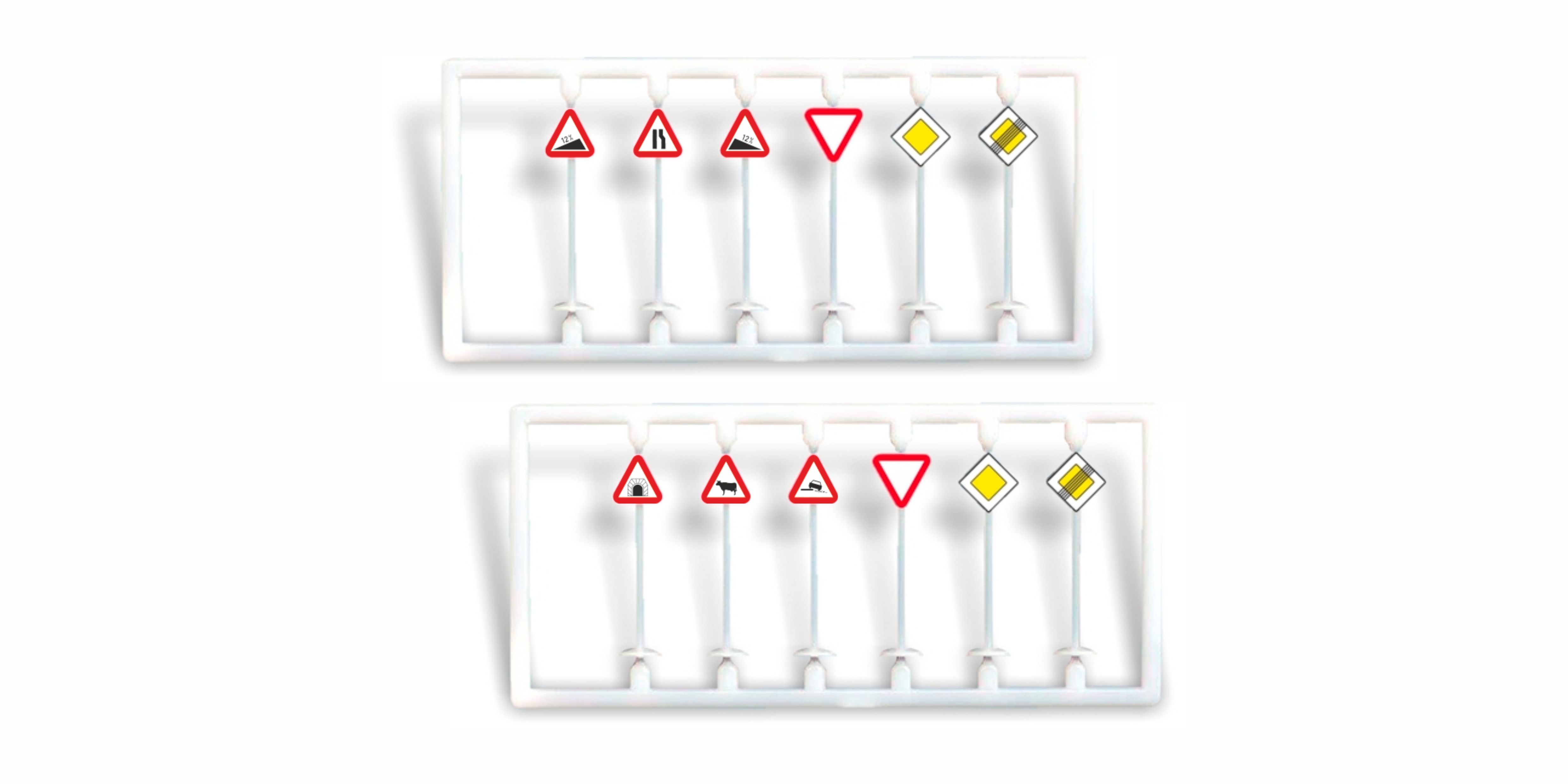 Die Packung enthält 12 Stk. Verkehrsschilder in Größe H0.