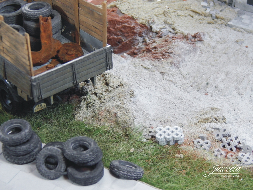 Altreifen, Altreifen, Altreifen. Hier sind die Mindest-Profiltiefen deutlich unterschritten. Daher nur noch verwendbar als Ladegut, für den Reifenstapel um die Ecke, für den Schrottplatz, für die Rennpiste oder einfach nur für die Gestaltug des Dioramas.