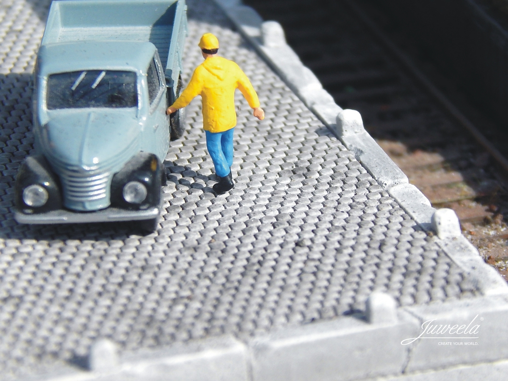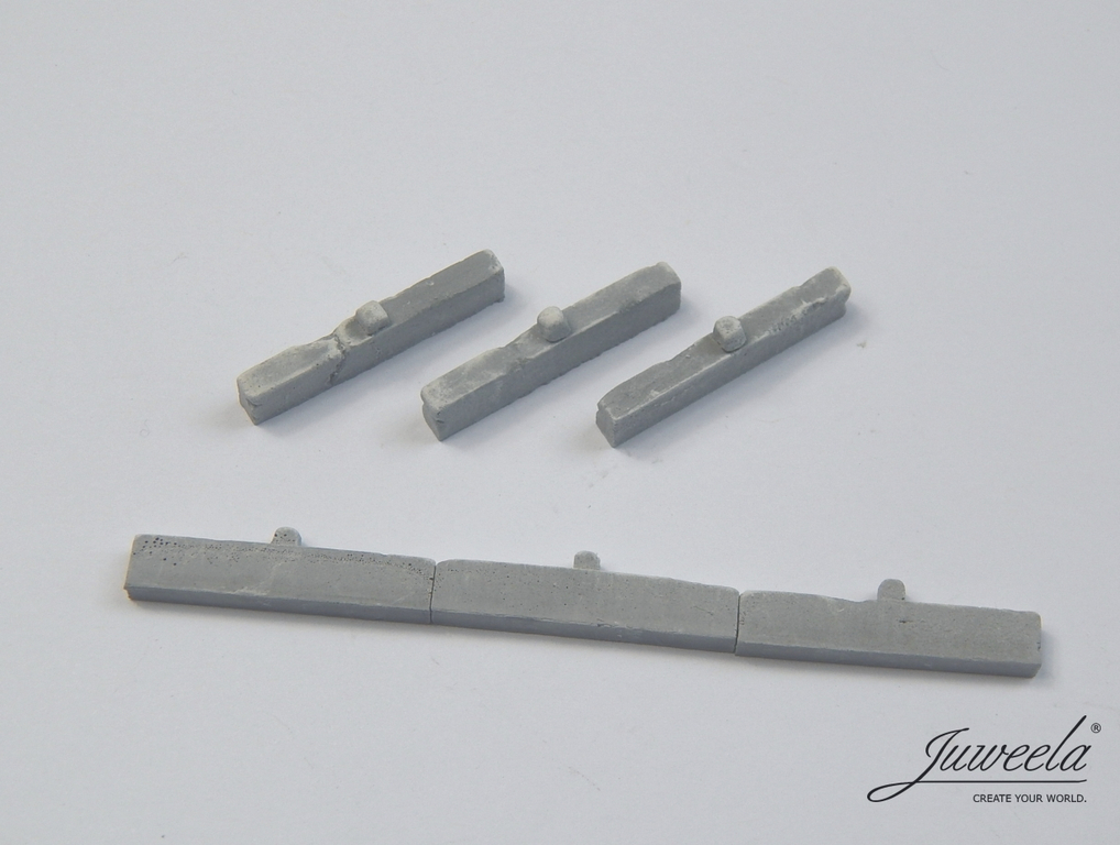 Zur Gestaltung oder zum Anlegen von Ladestraßen für die Modelleisenbahn Spur TT. Die Ladestraßenkanten werden als Verblender eingesetzt. So läßt sich schnell und einfach ein optisch reizvoller Bahnsteig-Bereich und Hingucker im Diorama darstellen.