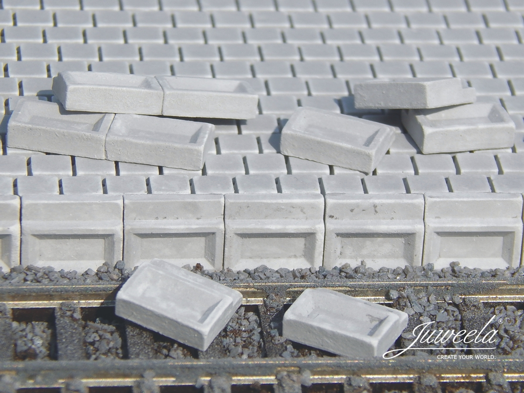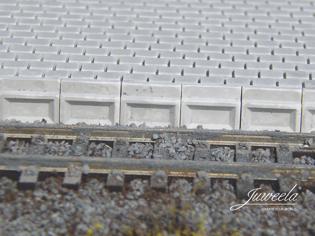 Zur Gestaltung oder zum Anlegen von Bahnsteigen für die Modelleisenbahn Spur H0. Die Bahnsteigkanten werden als Verblender eingesetzt. So läßt sich schnell und einfach ein optisch reizvoller Bahnsteig-Bereich und Hingucker im Diorama darstellen.