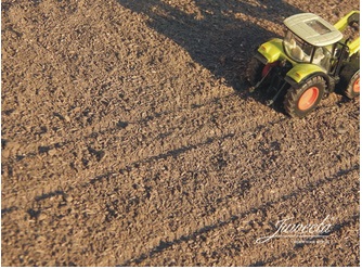 Wir empfehlen einen kleinen Teil der Bodenmischung mit einem Gemisch aus Leim und Wasser (75/25 - pastös) zu mischen und auf die zukünftige Ackerfläche flach aufzutragen. Die Dicke anpassen wie deutlich zukünftige Vertiefungen/Spuren sein sollen. Das verbleibende Material ebenfalls dünn auf den noch feuchten Bereich aufstreuen. Leicht andrücken, Oberfläche strukturieren und Spuren (Reifen/Geräten) eindrücken. Nach Trocknung eventuell vorsichtig mit Sprühkleber noch loses Material festigen.