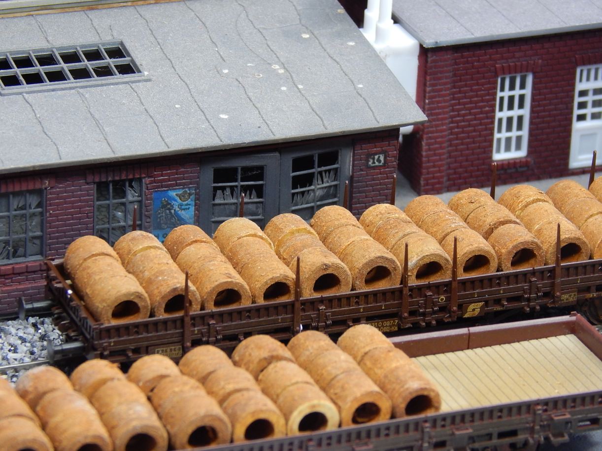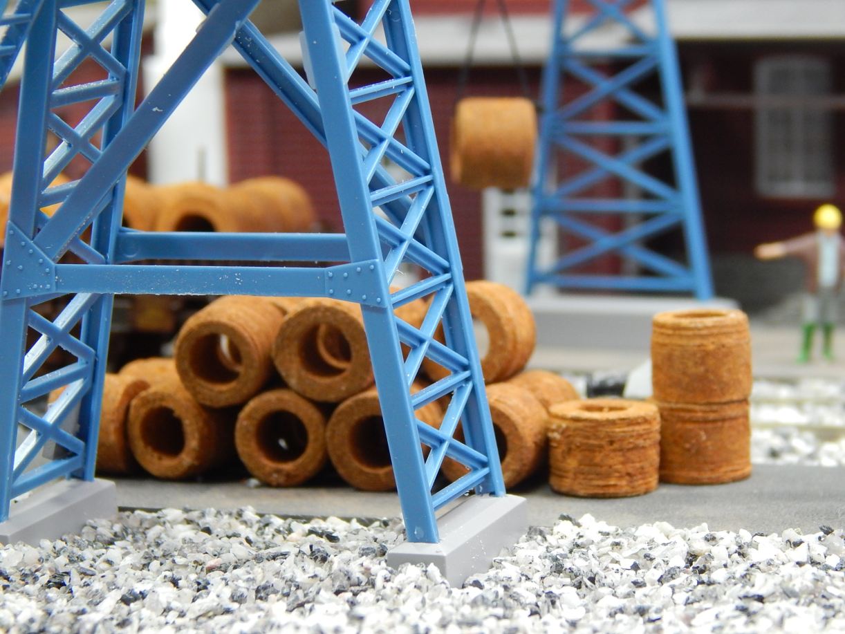 Drahtrollen (Coils) waren oft beim Eisenbahn-Transport anzutreffen - und auf einem Diorama sehen sie auch gut aus.