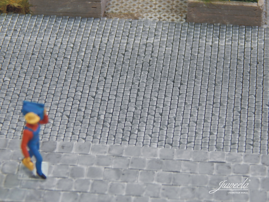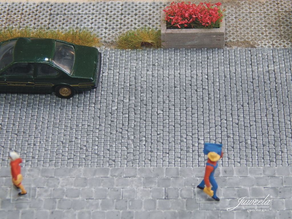 Juweela, Bürgersteig - Bahnsteig - Gehwegplatten, 40x40 dunkel, Spur H0, 28269 - 28270, 1:87, Made in Germany