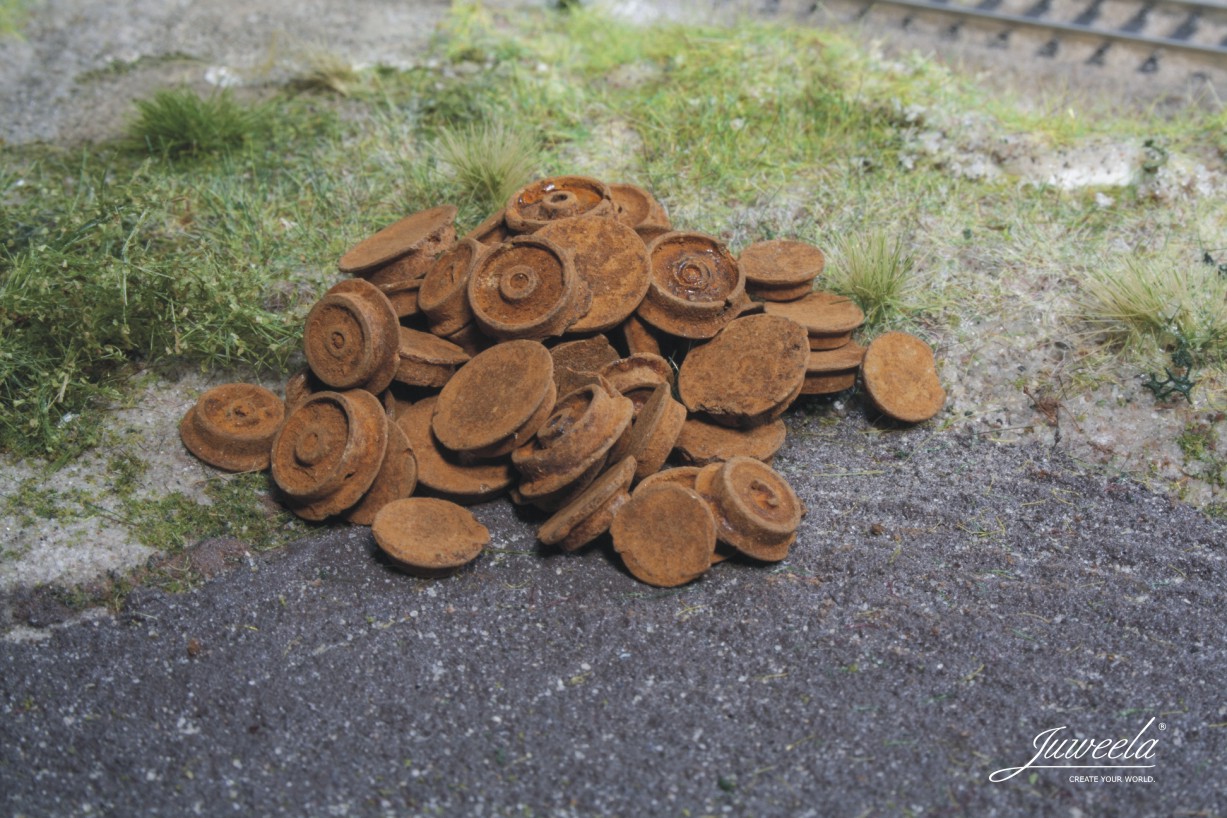 Juweela, Metallschrott Radrollen rostig, Spur N / Spur TT, 21216 - 21217, Made in Germany