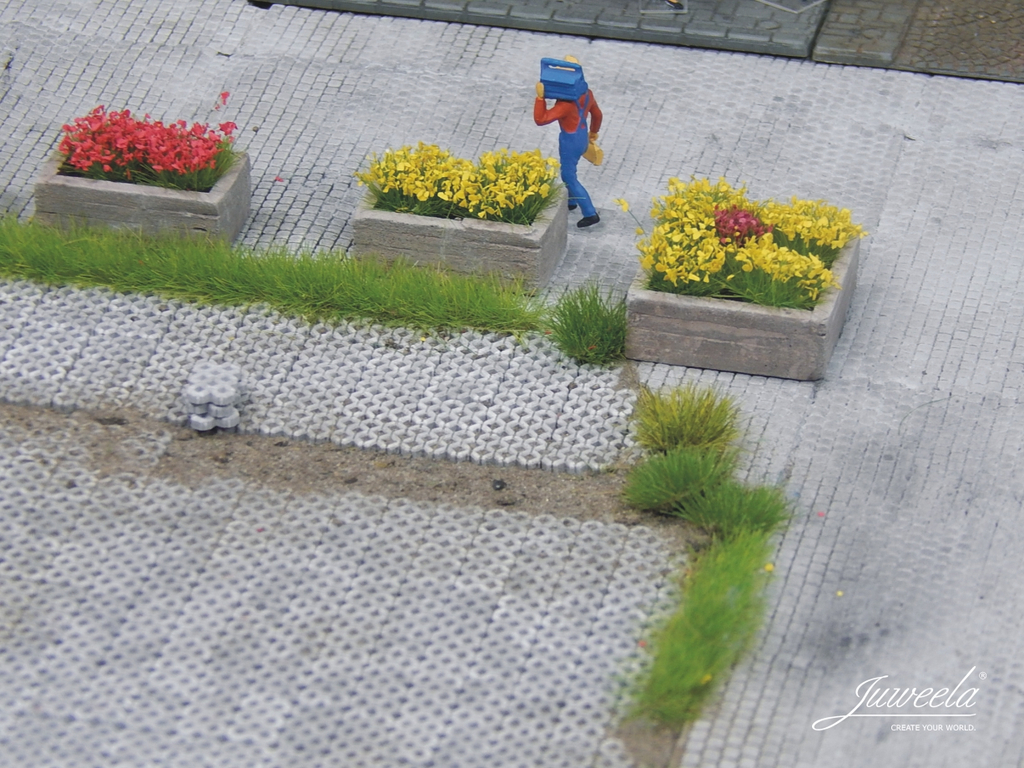 Und das machen Sie auch auf dem Miniatur Diorama. Einfach "bepflanzen" - je nach "Pflegezustand" mit Blumen oder einfach nur mit Gestrüpp: Immer ein Hingucker auf der Modellanlage.