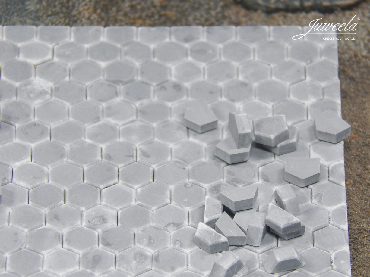 Juweela, Pflastersteine Hexa grau dunkel Ergänzung, Spur 1, 1:32 / 1:35, 23355, Made in Germany