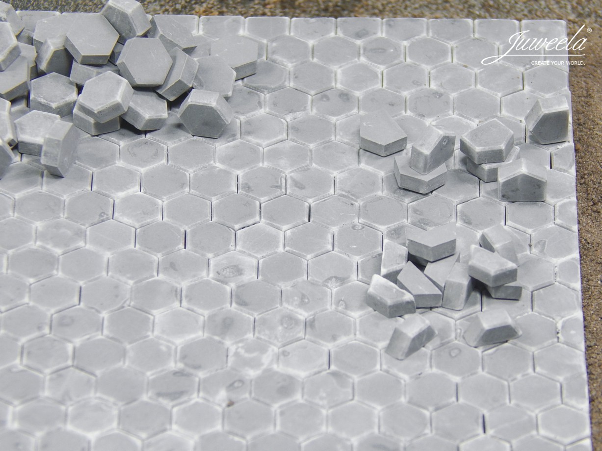 Juweela, Pflastersteine Hexa grau dunkel Sortiment, Spur 1, 1:32 / 1:35, 23357, Made in Germany
