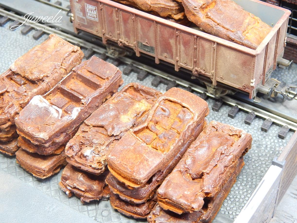 Auch ein Autoleben hat mal ein Ende. Diese hier stehen schon etwas länger auf dem Schrottplatz Ihres Dioramas und warten auf den Transport mit Eisenbahn oder LKW.