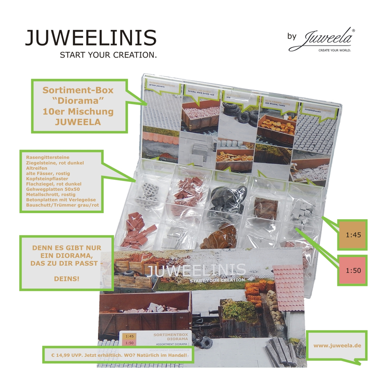 Juweela, Spur 0, Sortiment-Box "Diorama", 24177 , 1:45, Made in Germany,
