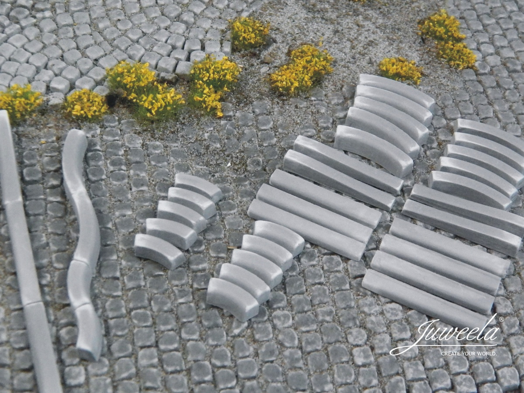 Juweela, Bordsteine Ergänzung (Kurve/Absenk), Spur 1, 1:32 / 1:35, 23434 - 23435, Made in Germany