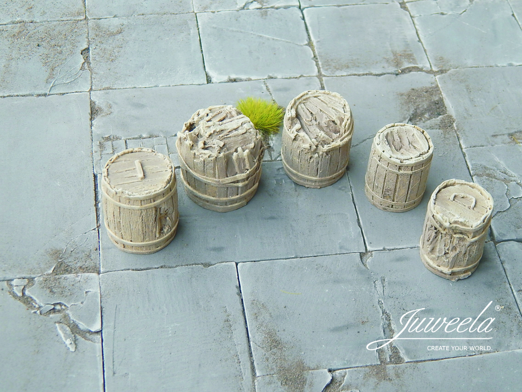 Juweela, Fässer Holz Hell beschädigt, Spur 1, 1:32 / 1:35, 23416 - 23417, Made in Germany