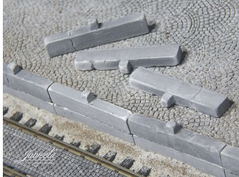 Zur Gestaltung oder zum Anlegen von Ladestraßen für die Modelleisenbahn Spur H0. Die Ladestraßenkanten werden als Verblender eingesetzt. So läßt sich schnell und einfach ein optisch reizvoller Bahnsteig-Bereich und Hingucker im Diorama darstellen.