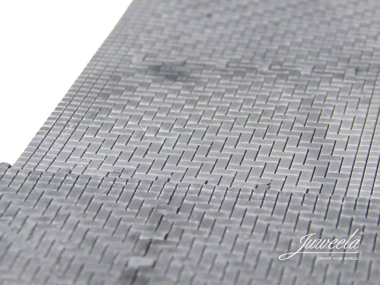 Flexyway sind feste Juweela Steine, die einzeln auf einer dünnen Trägerfolie sitzen. Das macht das komplette Segment in-sich-selbst-flexibel. Jeder Stein kann einzeln entnommen werden: Schlaglöcher, Schäden, Krater oder die Baustelle können also da sein wo gewünscht.