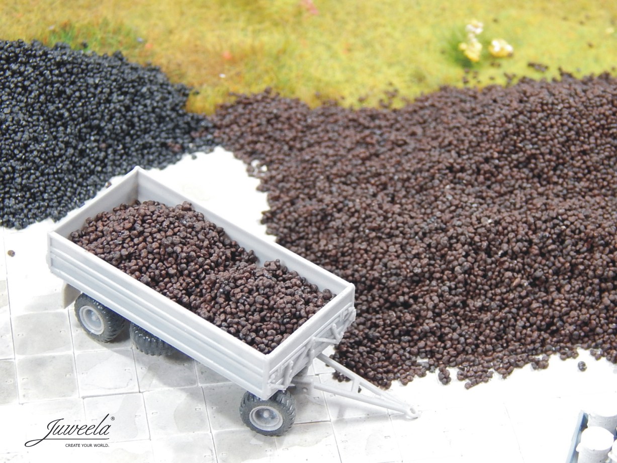 Braun-Kohle in Bruchstücken wie sie tonnenweise auf der Schiene oder der Straße rollte - ob in Schuttgutwaggon oder im LKW; und natürlich auch als Ladegut in Spur TT.