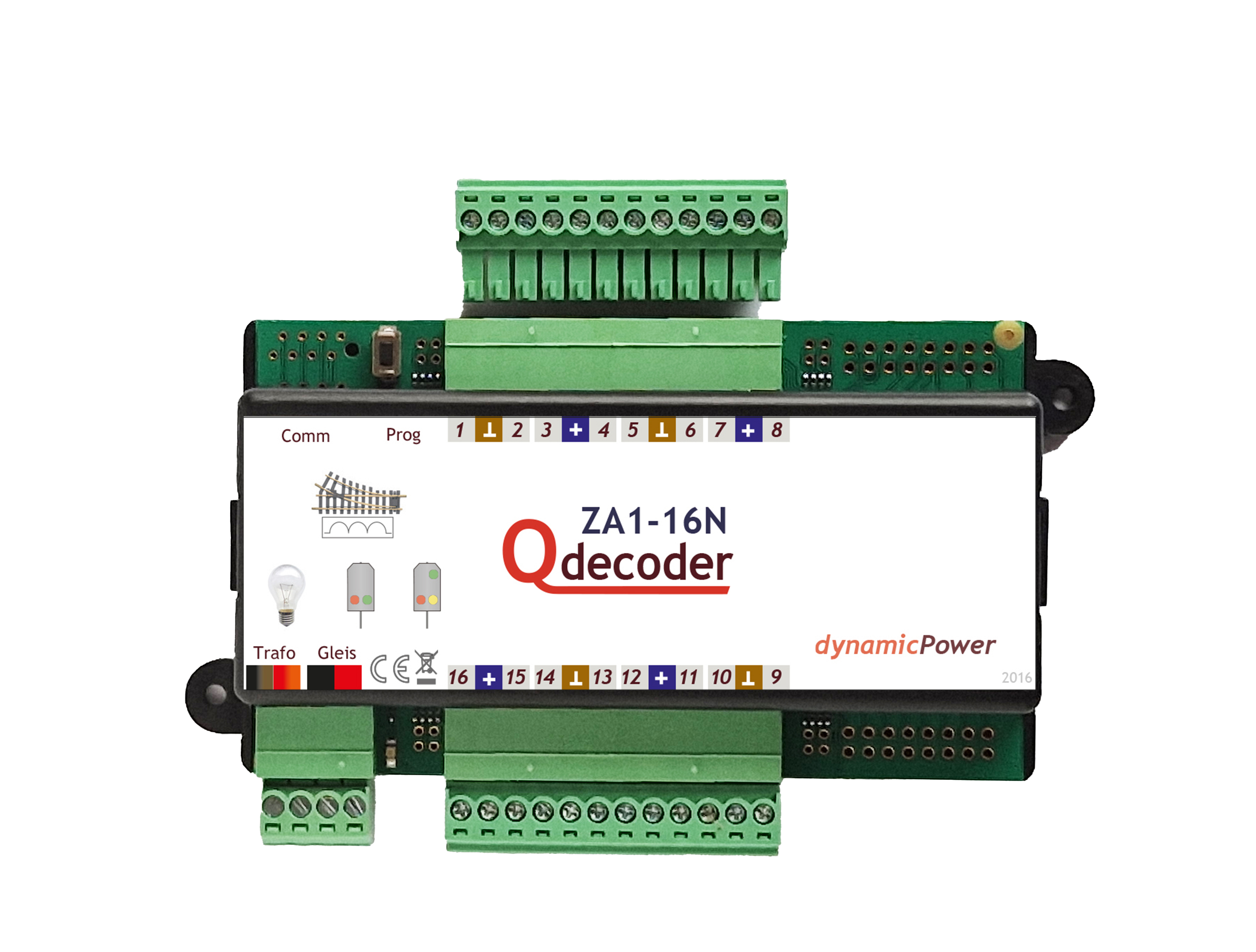 Der Qdecoder ZA1-16N deLuxe kombiniert die Leistung eines Hochleistungs-Weichendecoders mit Zusatzfunktionen wie Lampen- und Signalsteuerung. Damit ist er die richtige Wahl für alle, die mehr erwarten als Standardlösungen.