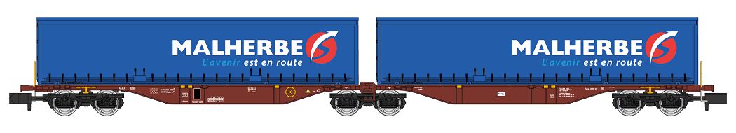 REE Modeles , Spur N, Doppelcontainertragwagen Typ Sggmrss90 TOUAX beladen mit 2 45´ Wechselbehälter "MALHERBE" mit Planenwänden, NW-204