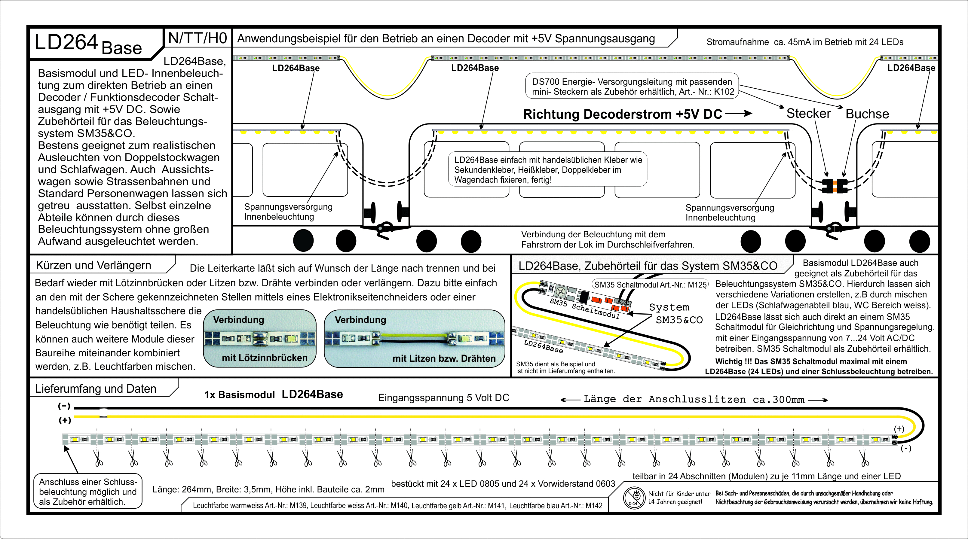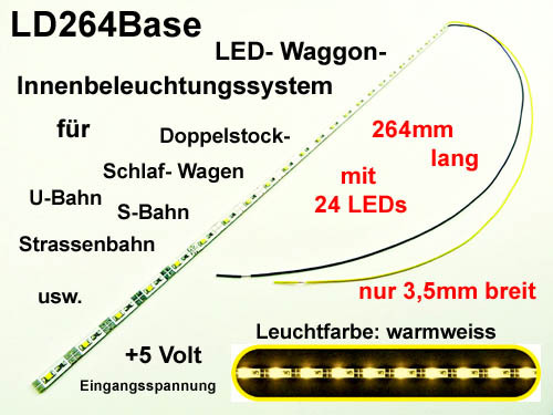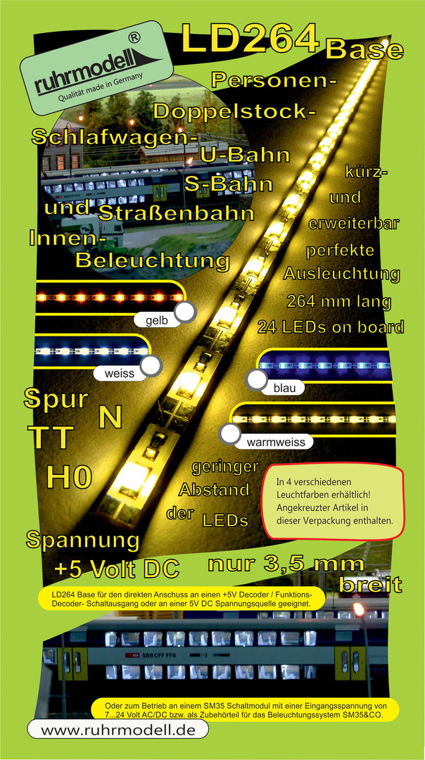 Ruhrmodell M139, LED Waggonbeleuchtung LD264 Base, 5Volt, Warmweiss, H0, TT, N
