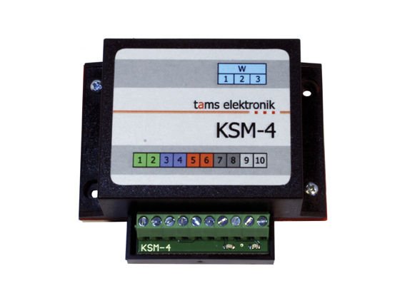 durch DCC-Weichenbefehle an die Adresse des integrierten Weichendecoders. Die Kehrschleifensteuerung wird damit Teil der Digitalsteuerung. Einziger Wermutstropfen: Der integrierte Weichendecoder versteht nur DCC (auch wenn das KSM-4 grundsätzlich für alle Digitalformate geeignet ist).