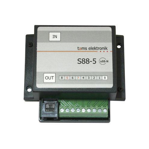 Der Rückmelder S88-5 hat RJ-45-Anschlüsse entsprechend der Norm s88-N, die die Belegung von handelsüblichen Patch-Kabeln für die Verwendung in s88-Rückmeldesystemen regelt. Anders als die häufig verwendeten 6-adrigen Anschlusskabel sind Patch-Kabel, die in Computer-Netzwerken gebräuchlich sind, gegenüber fremden elektrischen Signalen weitestgehend abgeschirmt. Durch Verwendung von Patch-Kabeln wird die Störanfälligkeit im s88-Bus daher erheblich reduziert.